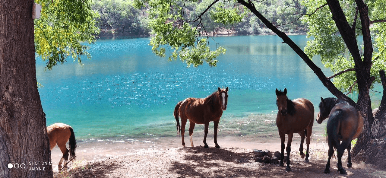 Early morning trek to the lake, with options for horseback riding or hiking.